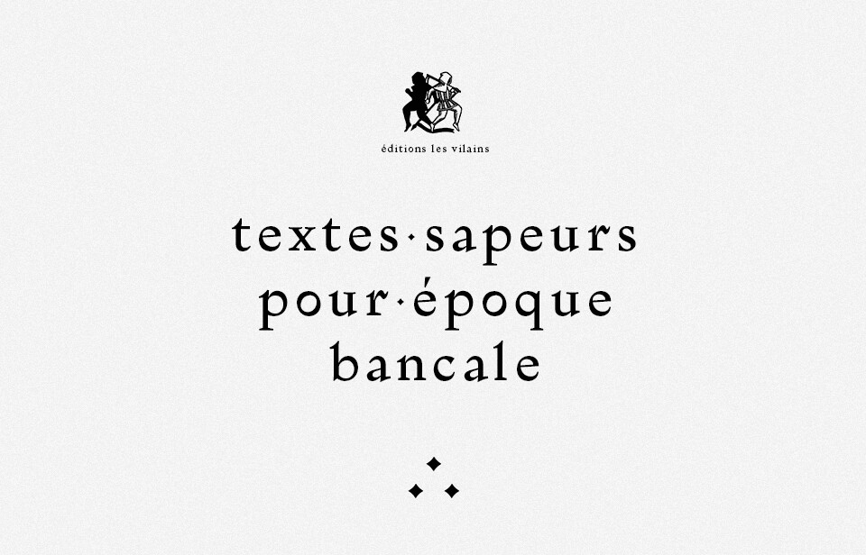 Maison d’édition associative fondée en 2019. Nous souhaitons faire advenir ou remettre en circulation ce que nous appelons des textes sapeurs. Nous désignons par là les écrits qui, creusant sous les fondations de l’époque, hâteront sa chute et laisseront place nette pour qu’autre chose puisse advenir.
